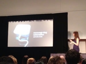 Put your main blog subscribe module above the fold. Goal: Get visitors to like your content enough to keep coming back for more. Do this by encouraging blog subscribers.